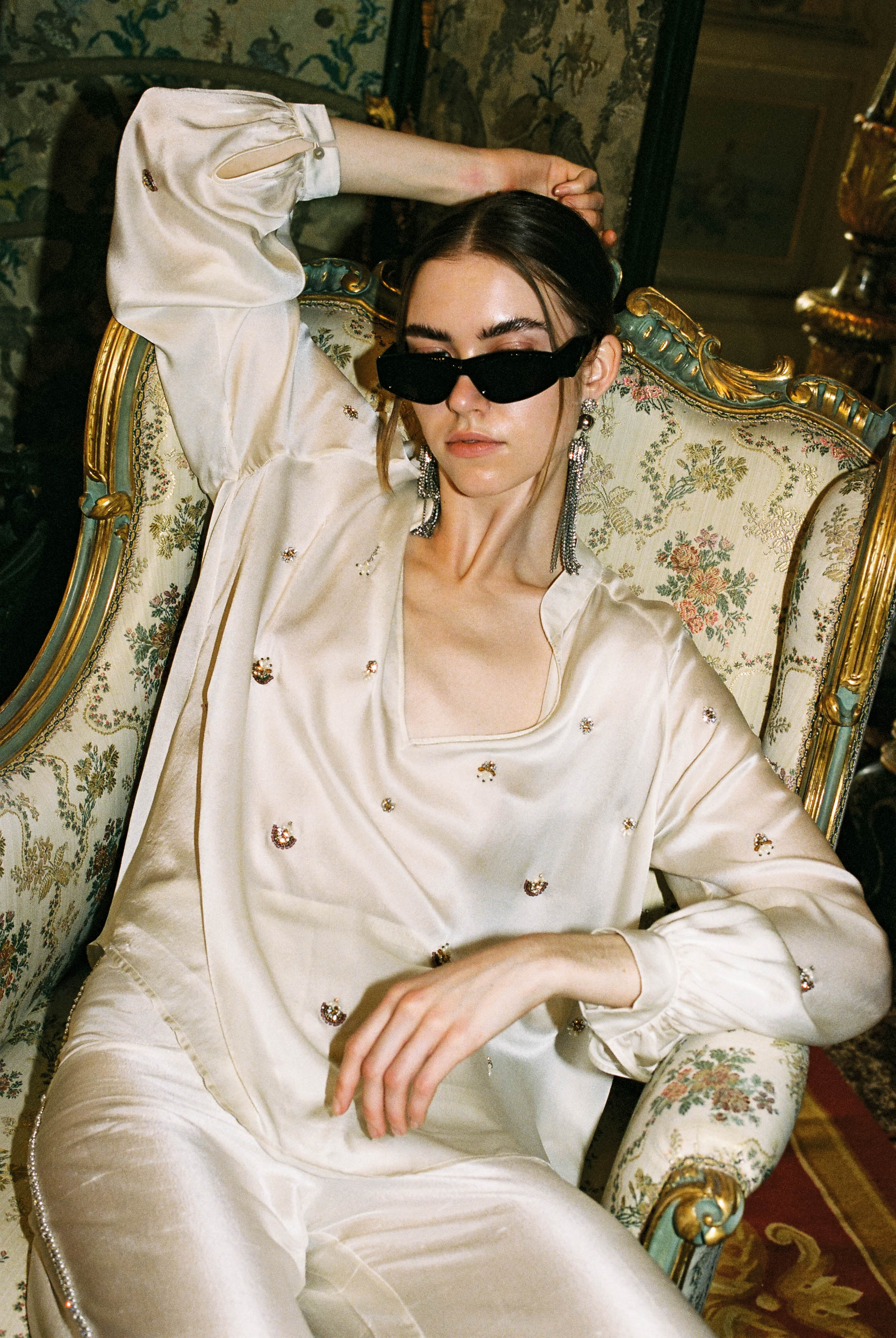 • Hand-sewn jewelled embroidery