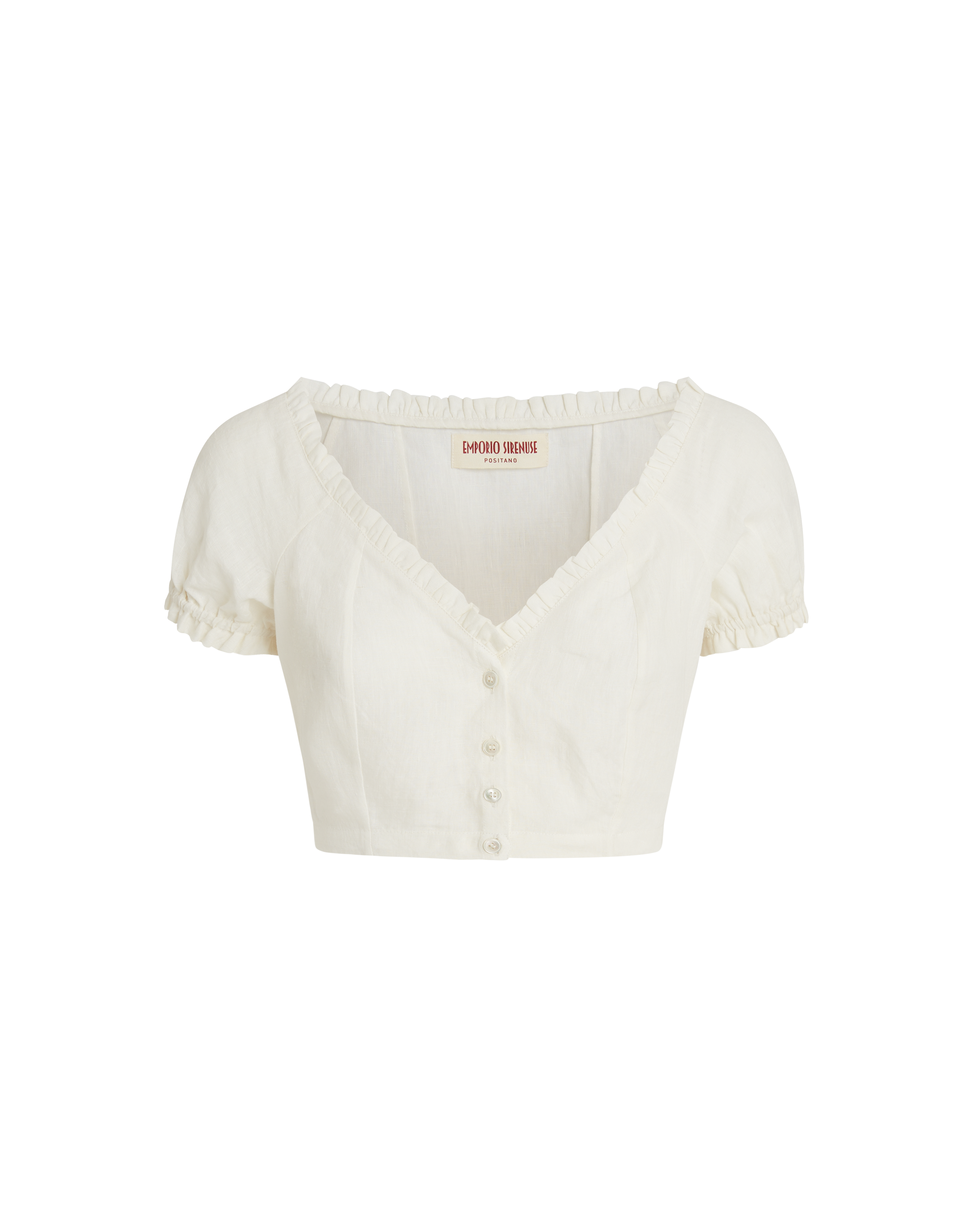 Upgrade your wardrobe with the Violante Top, a best-selling carryover staple in our collection. Crafted from luxurious handloom linen, this versatile piece features a chic open sweetheart neckline and delicate frilled edges. Pair it with your favorite denim for a laid-back bohemian look or a flowing skirt for an effortlessly romantic ensemble.