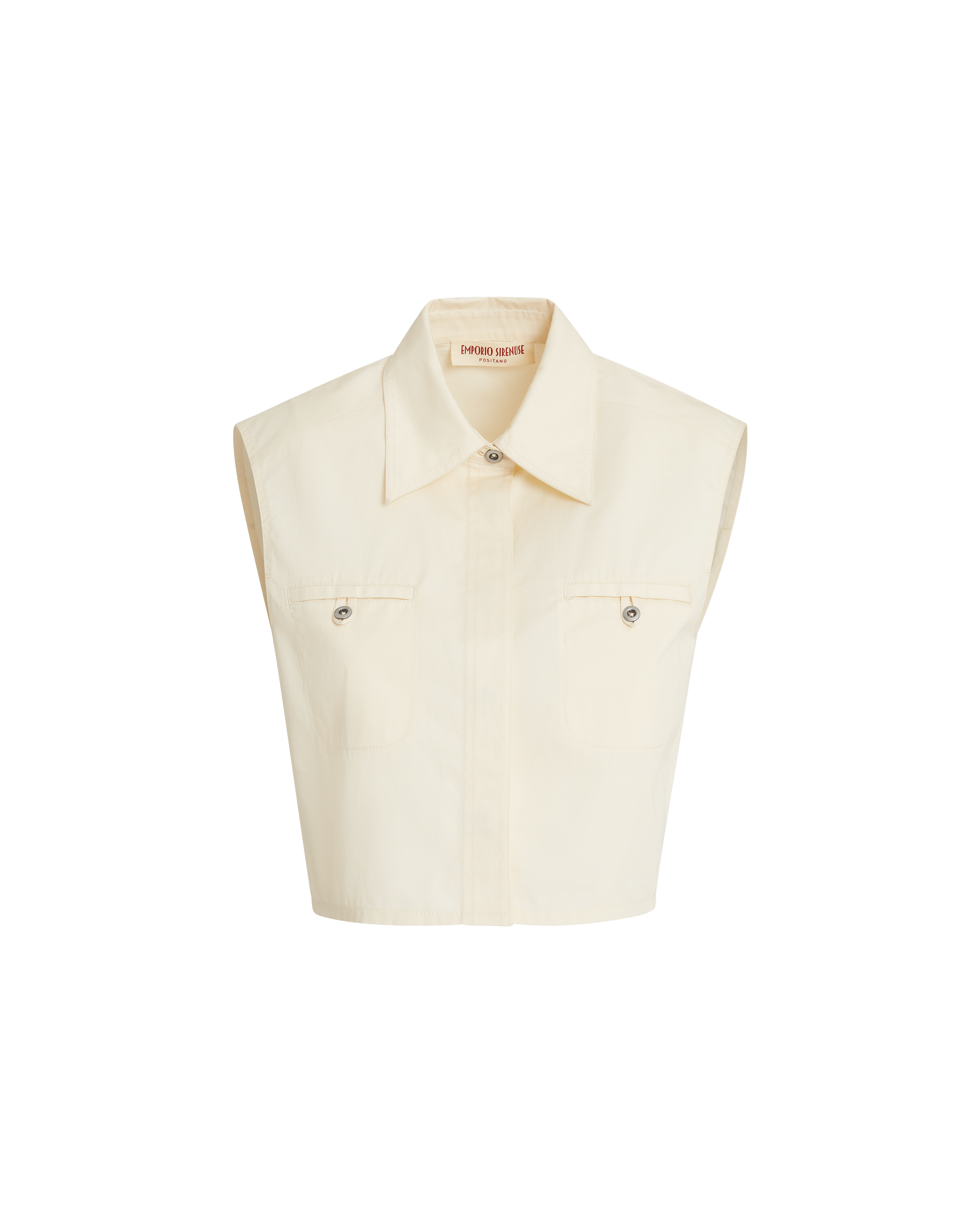 A chic addition to your warm-weather wardrobe, the Caterina Top is a streamlined sleeveless shirt with a tapered waist. Its cropped design provides just the right touch of exposure, making it the perfect match for high-rise trousers or an A-line maxi skirt. Adorned with aluminum buttons sourced from Italy, this top draws inspiration from early 1900s Americana style. Available in Tobacco, Custard, and Milk.